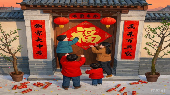 春联,则是春节文化中一抹独特的亮色。红纸上书写着对仗工整、寓意吉祥的文字,既有对过去一年丰收与喜悦的感恩,又有对新一年好运与福气的祈愿。“千门万户曈曈日,总把新桃换旧符。”当一副副春联张贴在门两侧,那浓郁的墨香仿佛能穿越时空,将古老的传统文化与现代生活紧密相连。它们不仅是一种装饰,更是一种精神寄托,一种对美好生活的向往与追求,让每一个看到春联的人都感受到节日的喜庆与祥和。