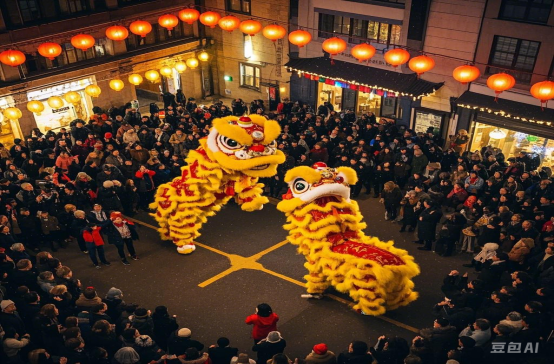 舞龙舞狮是我今年通过网络所体会最深刻的民俗活动,舞龙舞狮作为春节期间极具观赏性的传统民俗表演,更是将节日的欢乐氛围推向了高潮。色彩斑斓的巨龙翻腾跳跃,威风凛凛的狮子活泼灵动,舞者们精湛的技艺和默契的配合,赢得了观众们的阵阵喝彩与掌声。他们用灵动的身姿演绎着古老的传说与故事,将中华民族的勇敢、智慧和团结精神展现得淋漓尽致。那激昂的锣鼓声、欢快的音乐声,仿佛在诉说着春节的喜悦与欢乐,让人们沉浸在一场盛大的文化盛宴之中。