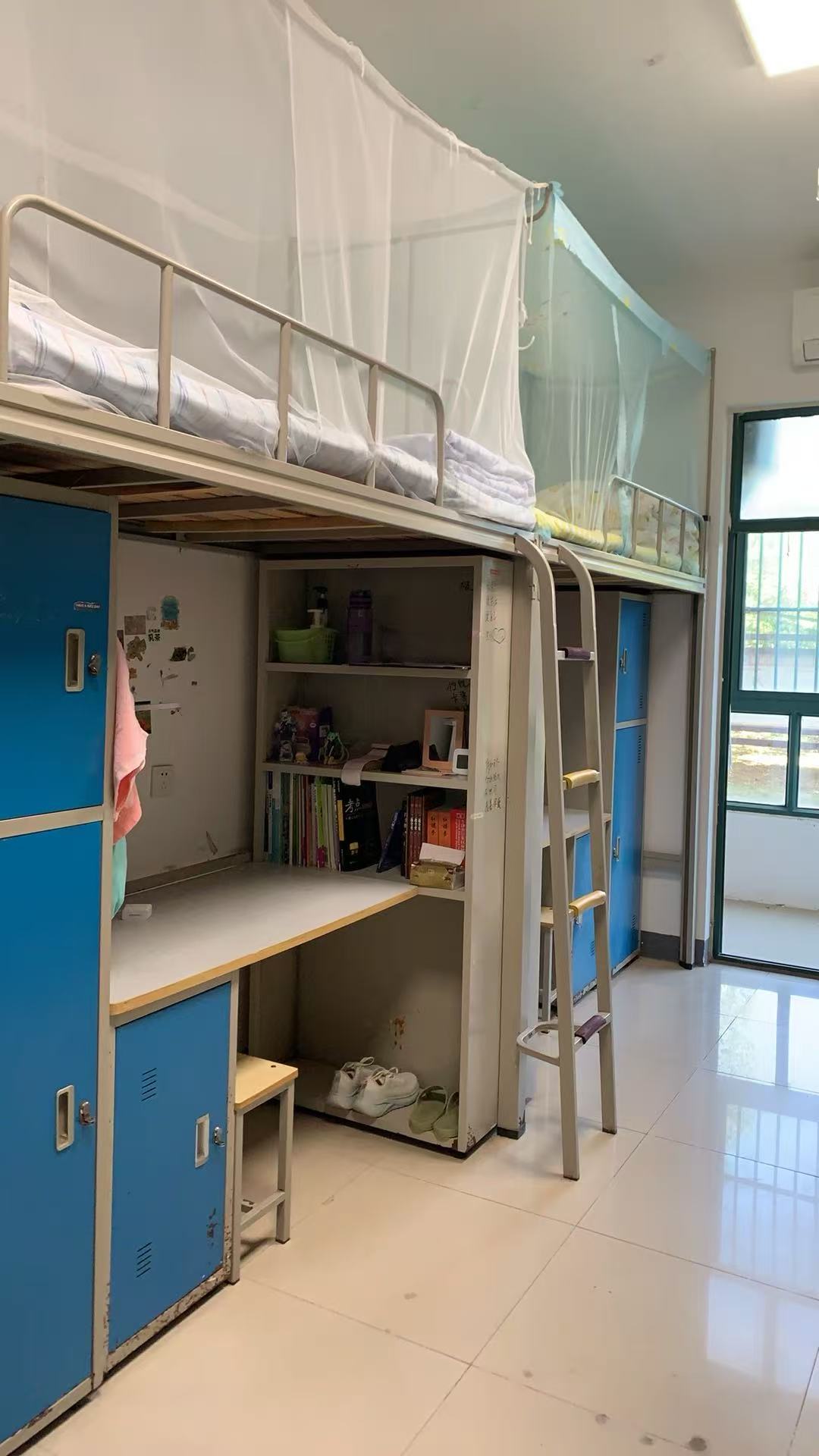 寝室单人床规格:0.8m*1.9m。每栋住宿单体设有少量加长床,满足超高学生住宿需求,有需求的同学入学教育期间可向生活老师报告。
