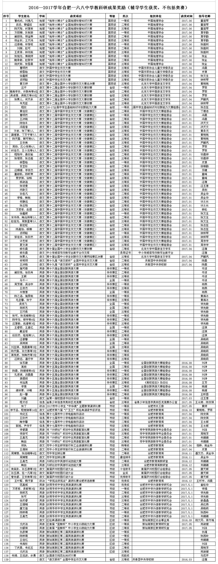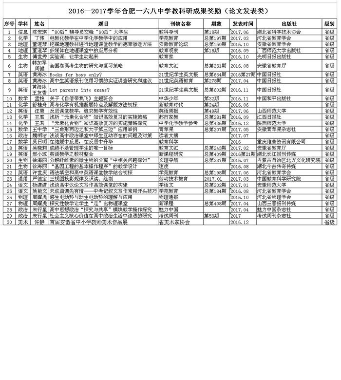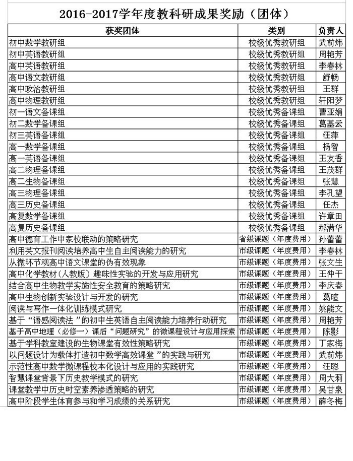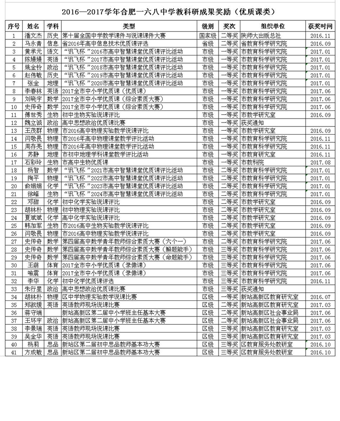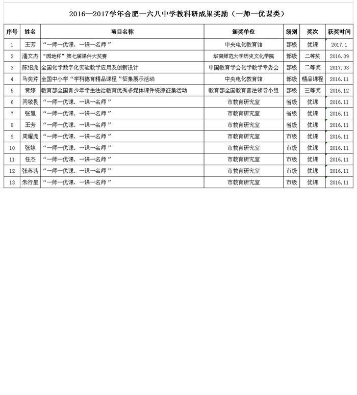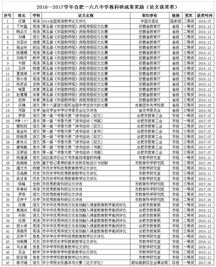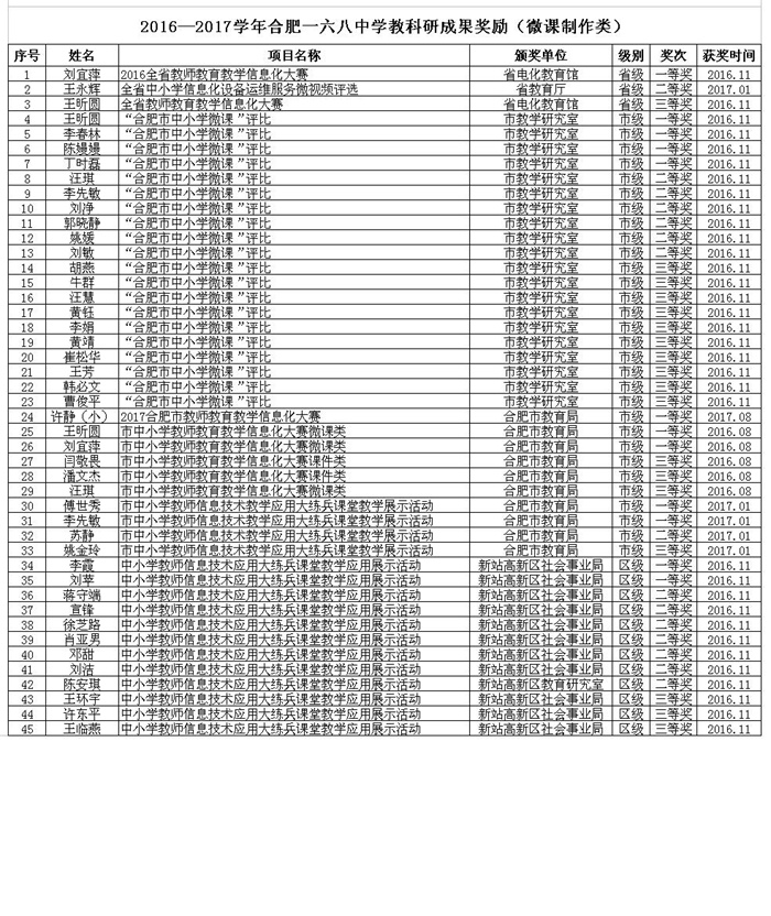 2016-2017学年度教师获奖情况统计