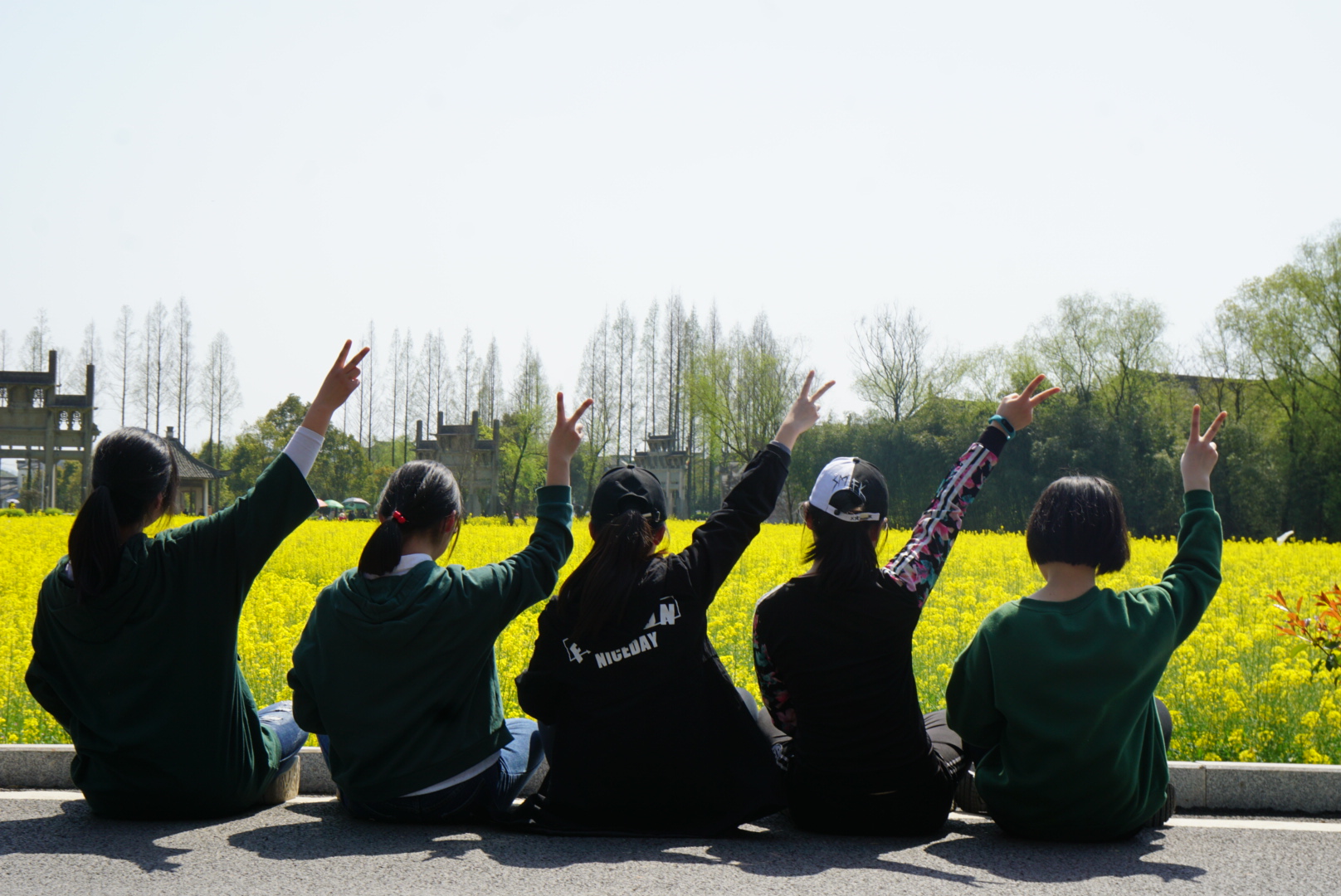 早起的倦意没有抑住同学内心的激动——冬日的严寒在和煦的春风中冰消雪融,萧索的大地随着柔和的春雨焕发生机。未置目的地,沿途大片的金黄映入眼帘,公路两旁的青山绿水是大片的蔓延。那大片的金黄中间穿梭着几抹灵动的身影,是同学们三五成群,各自结伴,想在靓丽的春天留下自己美丽的身影。