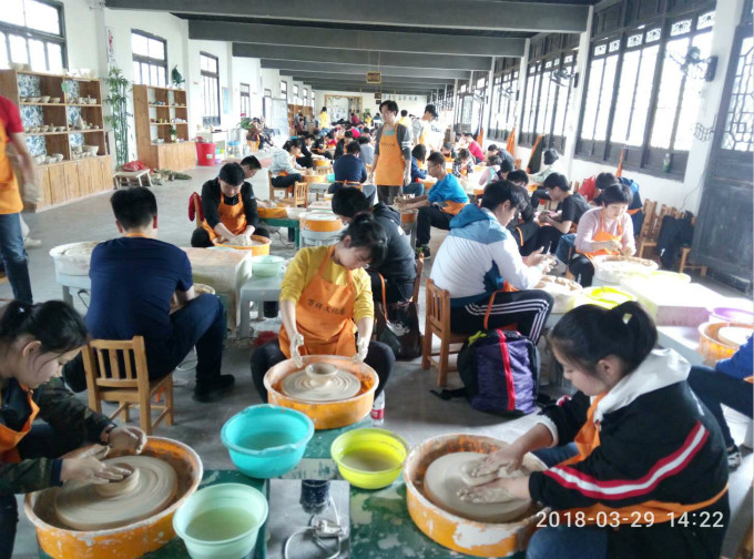 不久我们去做手工,先是玩橡皮泥再是彩绘瓷器最后是自己来制作瓷器,我们做瓷器时下尽了九牛二虎之力而总是弄不好只求求助于现场的制瓷师傅在他们的精妙绝伦的技术前那一团团瓷土就如同一个听话的孩子一般不停的变换形状最终产生一件精美的艺术品我们在一旁张大了嘴巴还有几个有天赋的做出了漂亮的作品真的让人叹为观止