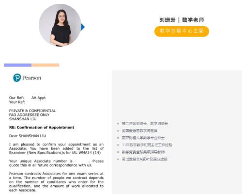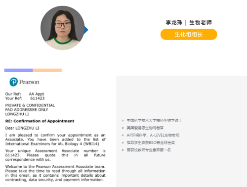 近期,数学组刘珊珊老师、生化组李龙珠老师先后收到入选英国爱德思官方阅卷官的喜讯。为他们感到高兴的同时,我们也希望能够通过他们的经验分享让更多人了解国际考官背后的秘密。