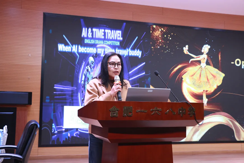 今年的全英戏剧大赛围绕《AI与时空旅行》这一核心主题展开。如活动正式开始前,合肥一六八中学国际部Drama Club指导老师Lanz在发言时所说:“今年戏剧大赛主题的改变,既是响应国家‘教育科技人才一体化’的培养方针,也是我们对‘教育赋能成长’的深度探索。”
