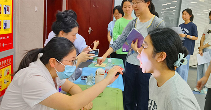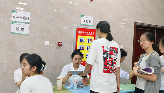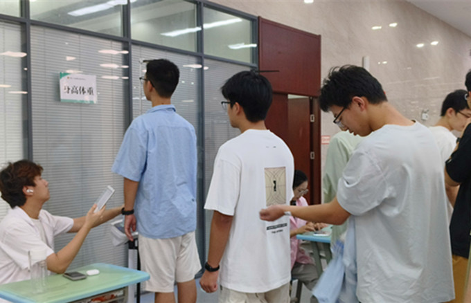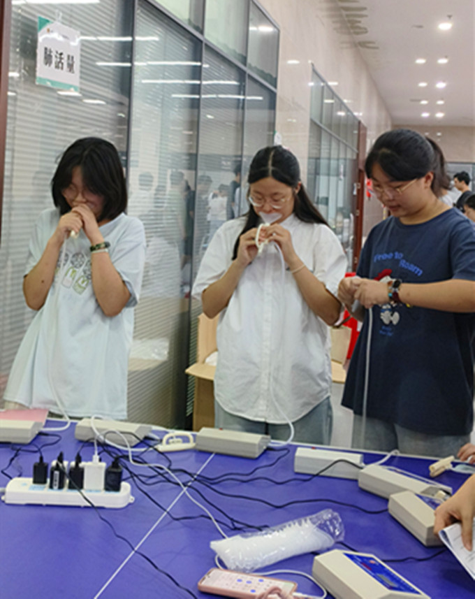 在身高体重和肺活量测量处,医务人员则重点关注学生的生长发育和体能状况。体检数据将为学校更有针对性地开展体育教学活动、指导学生科学锻炼提供重要依据。