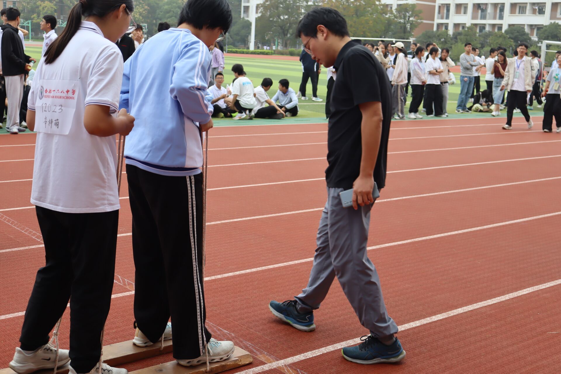 同学们“一二一”的呼喊伴随着现场的欢声笑语