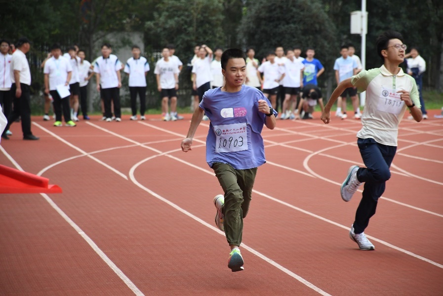 青春似火,激情无限。黄源泉孤军奋战在男子200米的比赛里,起跑的瞬间,你英姿飒爽,激起看台同学们海浪般的欢呼;今天你虽没能进入决赛,但作为小组第一,你冲线时的意气风发将持续激励着我们奋勇向前,跑出你的节奏,赢在每一刻!