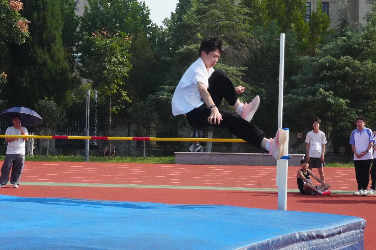 身担跳远、跳高两项任务的龙冬阳正往返于沙池和跳高台!那天你拍着胸脯,包揽两项比赛,今天你没有辜负你的誓言,我们为你的出色成绩喝彩,大家不会忘记,那个高高跃起的身影!