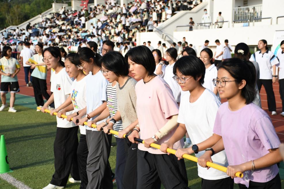 排在今天最后出场的,是由女生运动员们组成的齐心协力队伍!夕阳洒在你们的身上,汗水闪烁着此前体育课上一次次训练的身影。共同前进的步伐,展现了“谁说女子不如男”的气势,你们坚信“并肩超越,携手共赢——我们的每一步,都是团队的力量!”加油,你们是最棒的!