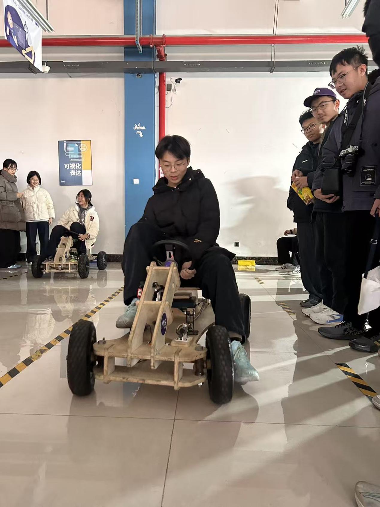 这场从教室到车间的移动课堂,让同学们亲眼见证了产品从概念到成型的完整过程。在蔚来汽车生产基地,现代化生产线上机器人的精准操作与高效协同,展现了智能制造的真实图景。近距离观察汽车制造的各个环节,让同学们直观感受到新能源汽车在材料、设计与动力系统上的创新突破。亲手参与木质小车组装流程。从轮胎的组装到小车的驾驶,同学们深度参与其中,欢声笑语中体会到“工匠精神”是如何在每一个细节中落地的。许多同学表示,自动化生产线不仅令人惊叹,更让他们深刻认识到科技正如何重塑传统制造业的形态。后续的讲座中,我们也感受到了国产新能源汽车发展的迅速以及技术的先进,感受到了新时代在党的领导下,国家科技的快速发展,技术的快速进步。