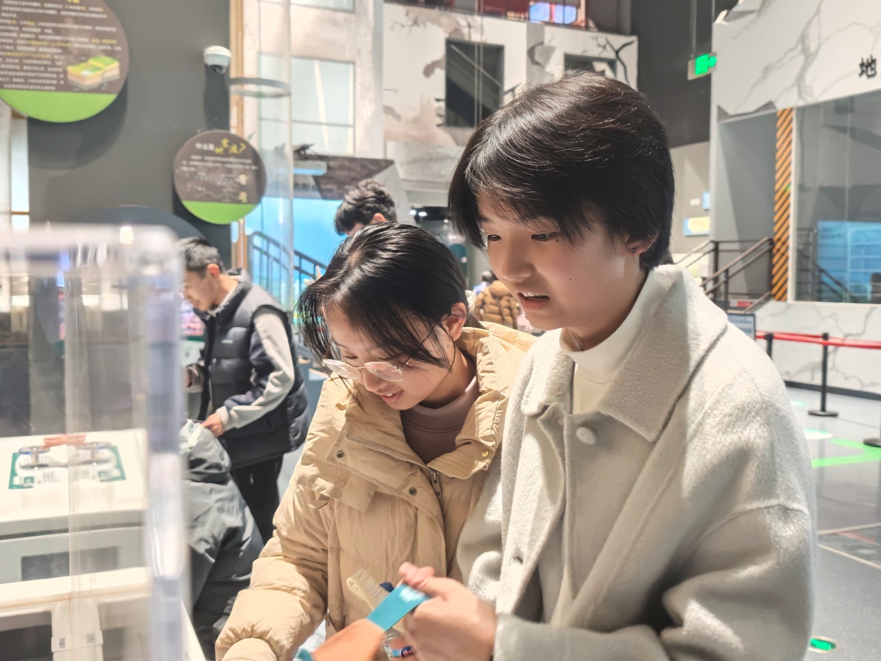 如果说工厂参访让同学们触摸到工业的温度与精度,那么随后在合肥科技馆的探索,则开启了一场与科技的直接对话。科技馆以“探索—认知—创新”为主线设置的多个展厅,涵盖了从基础科学到前沿科技的丰富内容。在模拟自然灾害的展区,同学们通过互动体验增强了安全意识;在物理、信息科学等展区,跨学科的知识以生动可感的方式呈现出来。不少同学在参观后谈到,这种自由探索的经历让他们在课堂之外看到了知识的广阔联结,也激发了对未来方向的更多想象。