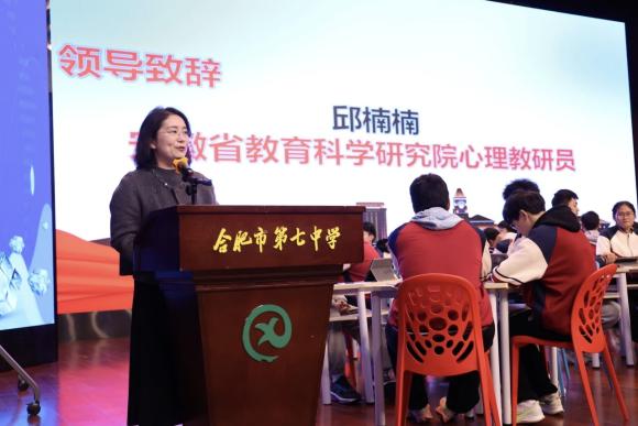 活动伊始,安徽省心理健康教育教研员邱楠楠、合肥市教育科学研究院院长鲁先法、合肥七中校长梁昌波分别登台致辞,为活动拉开序幕。邱楠楠在致辞中指出,人工智能为心理健康教育带来了全新可能,让心理洞察更精准、支持干预更及时、师生互动更具温度;鲁先法强调,跨区域联合教研是打破地域壁垒、实现心育资源共享、提升教师数字化教学素养的重要抓手;梁昌波对远道而来的无锡教育同仁及本地参会嘉宾表示热烈欢迎,详细介绍了合肥七中在心理健康教育领域的实践探索与丰硕成果,并期待以此次活动为纽带,深化校际合作,共同守护教育的初心与温度。