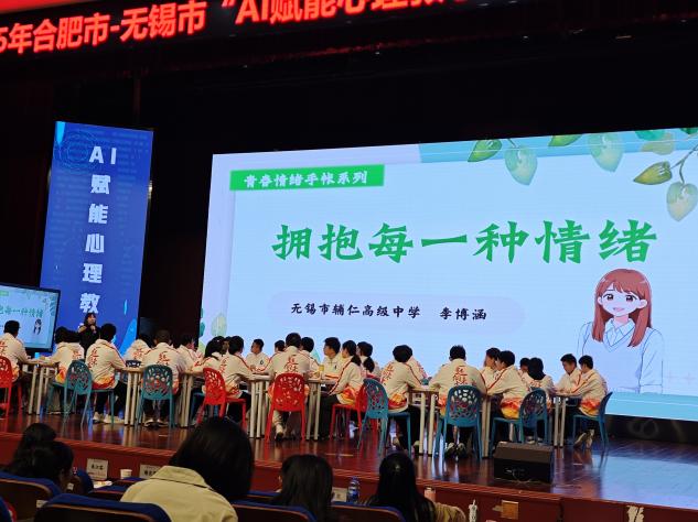 致辞结束后,四节高质量的“AI赋能心理教学”观摩课依次精彩呈现。合肥七中赵金金老师的《生命之诗》以AI为笔,勾勒生命美好;无锡辅仁高级中学李博涵老师的《青春情绪手帐》借智能工具,梳理青春心绪;无锡青山高级中学倪婷玉老师的《成长性思维修炼指南》用科技赋能,助力思维成长;合肥六中方林寒老师的《不被大风吹倒》以AI为翼,筑牢心灵铠甲。四节课均巧妙融入AI工具与智慧课堂技术,既富人文温度,又显科技魅力,有效激发了学生参与热情,引导学生掌握心理调适方法,赢得全场阵阵掌声。