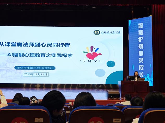下午,专家点评与实践分享环节如期开展。无锡市教科院心理教研员吴敏提出“AI为学科赋能,学科为AI铸魂”的理念,强调技术需扎根学科本质、服务教学目标;安徽省教科院心理教研员邱楠楠以“两个看见”为核心点评,既肯定AI在“助教、助学、助评”中的高效作用,更强调教师不可替代的人文关怀,呼吁实现技术与人文的平衡。实践分享中,无锡江南中学朱江容老师以“省心、动心、暖心”为关键词,结合真实案例介绍AI在心理教学中的应用路径,让在场教师对落地实践有了直观认知。