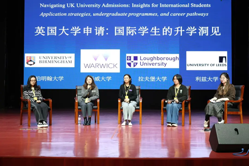 并分别邀请了华威大学、伯明翰大学、拉夫堡大学、利兹大学、女王大学、西安大略大学、达尔豪斯大学、渥太华大学、EHL酒店管理商学院、瑞士酒店管理大学、都柏林大学十一所大学的招生官上台,针对同学和家长最关心的申请策略、学科优势、奖学金政策、就业规划等进行详细解析。
