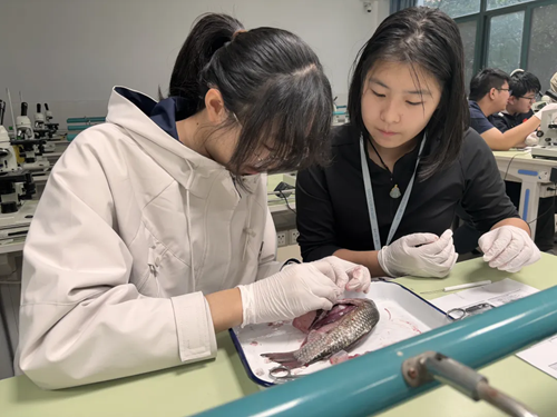 为了让同学们以“亲手探索”的方式,直观感知生命活动的奥秘。王璐璐老师带领同学们走进实验室,进行鲫鱼解剖实操。