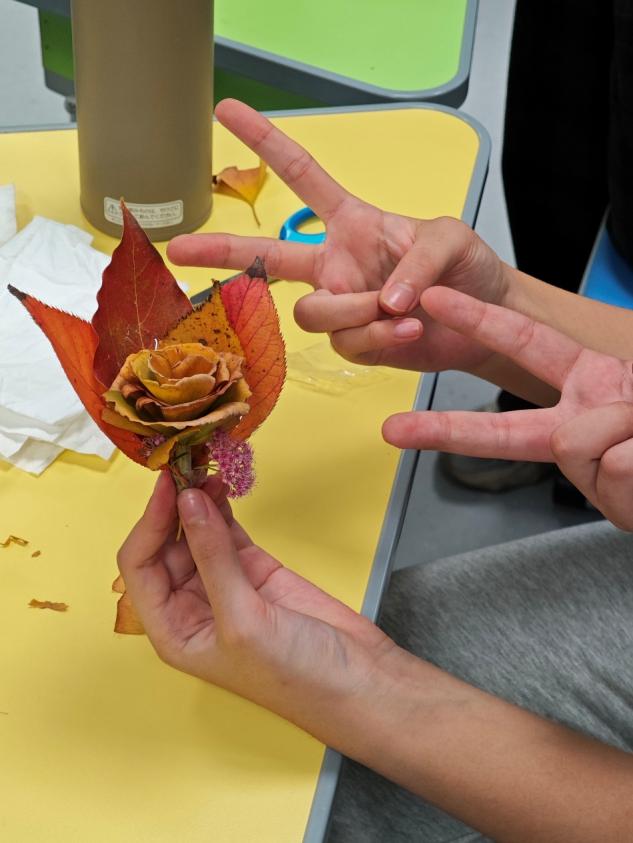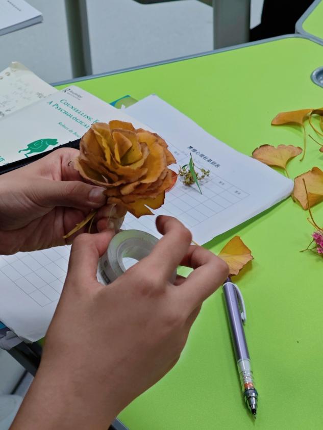 当秋意渐浓,社团创新性地开展了“捡秋课程——把秋天做成一朵花”户外实践活动。同学们走进校园角落,收集落叶、松果等自然素材,亲手将这些秋日馈赠制作成精美的花朵。活动中,大家亲近自然、舒缓压力,在动手创作的过程中感受自然之美与生活之趣,更在相互帮助、分享创意的过程中收获了友谊与快乐。