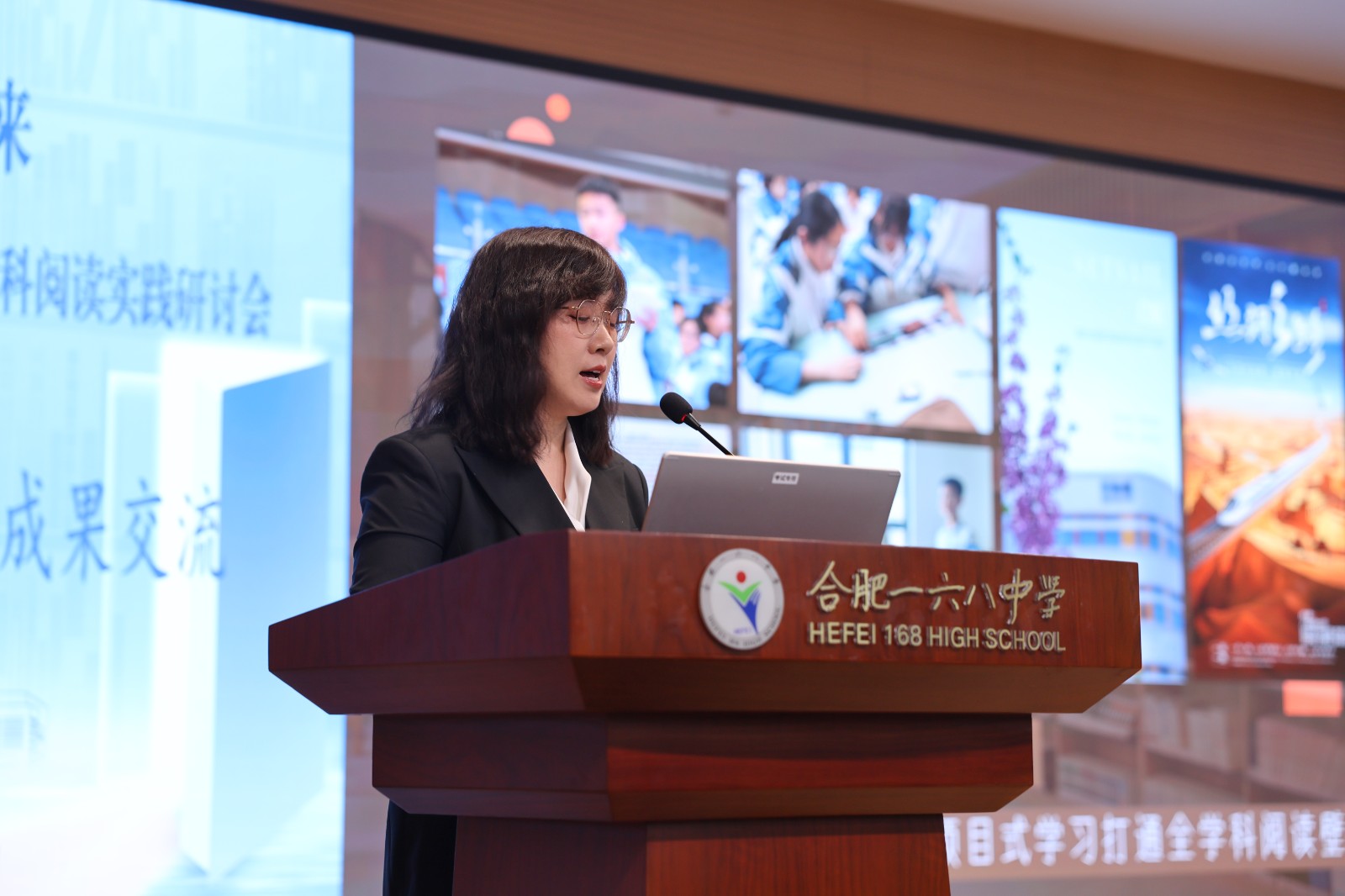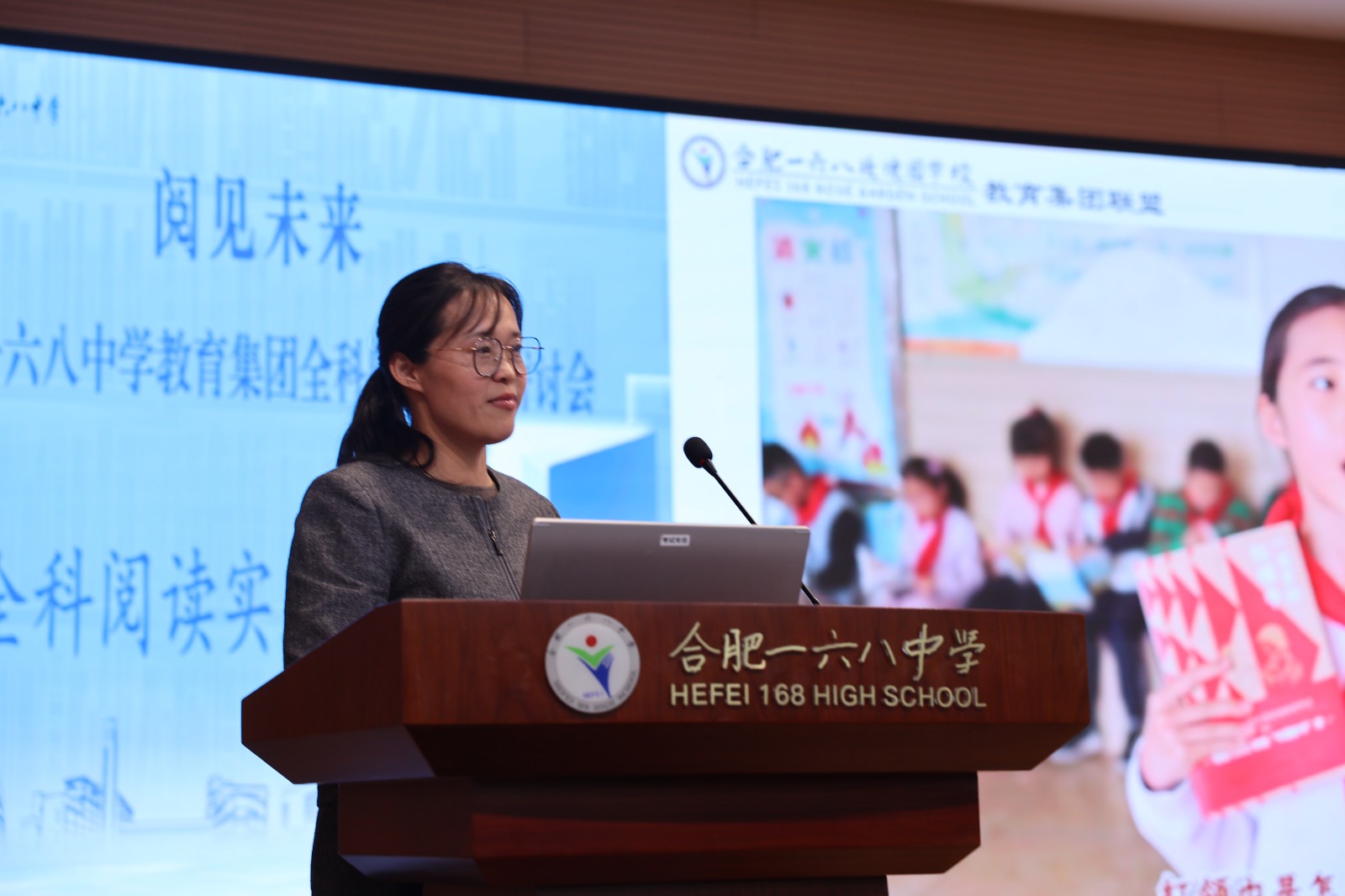 紧接着,刘华蓉上台致辞。她高度肯定合肥一六八中学教育集团在全科阅读实践中的先行探索与显著成效,认为学校将阅读从课堂延伸至全学科,从校园延伸至家庭与社会,为中小学落实全民阅读要求提供了可复制、可推广的实践样本。同时她还勉励广大教育工作者坚守教育初心,让阅读成为伴随学生一生的习惯与力量。