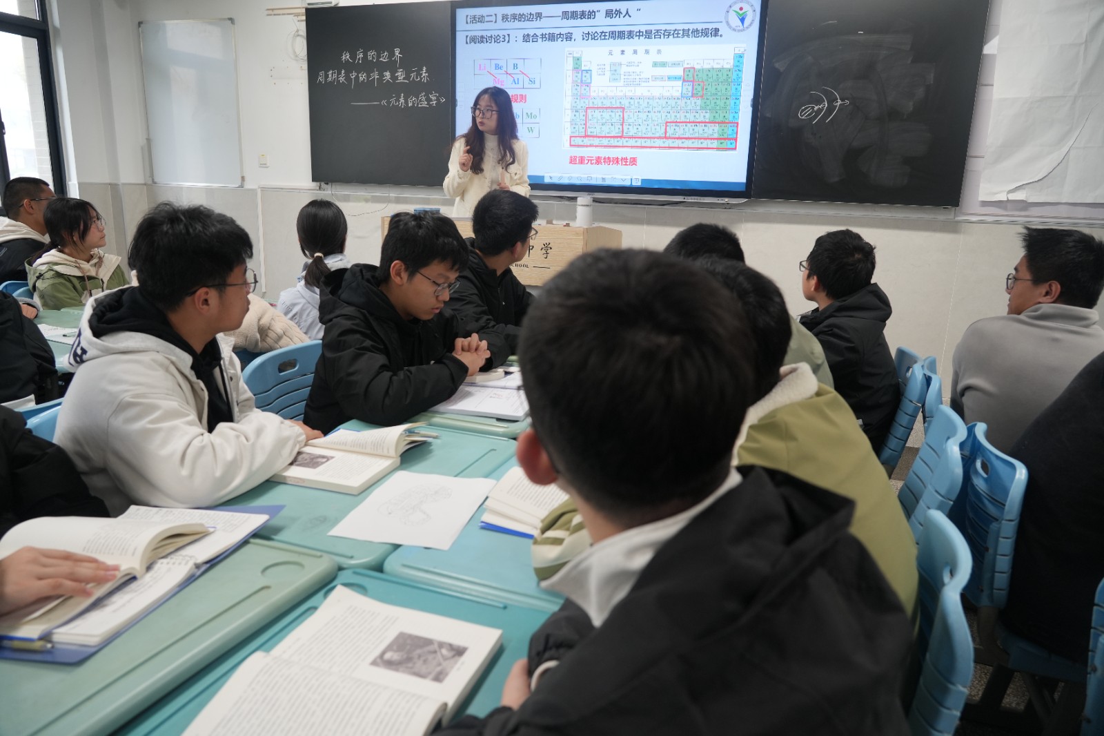 在全学科阅读展示环节,合肥一六八中学十个学科的教师带来10节全科阅读展示课与2节融通课堂,覆盖语文、数学、英语、物理、化学、生物、政治、历史、地理、心理等学科,将经典书目与学科思维深度融合。从《鲁迅小说全集》的文学品读,到《费马大定理》的数学探究;从《自然哲学的数学原理》的物理思辨,到《红楼梦》辅读、芷澜园丰收之道的跨学科融通,让阅读走出单一语文课堂,实现学科无界、阅读无痕的育人效果,充分展现学校全科阅读的实践成果。
