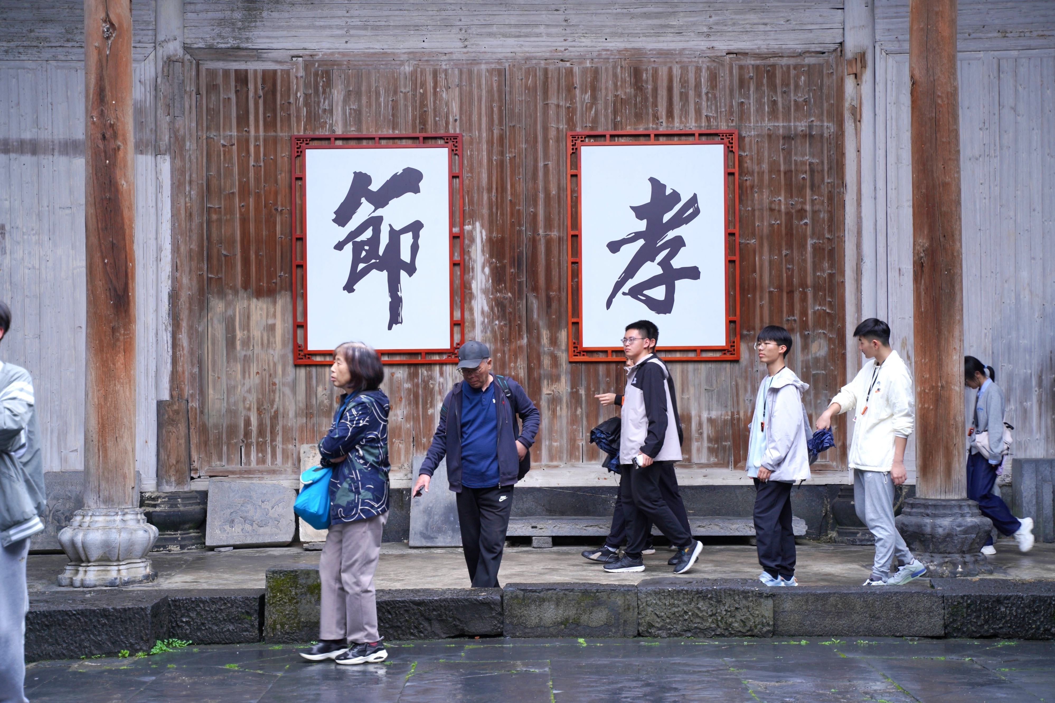 上午,我们首站抵达黟县屏山景区。这座始建于唐代的千年古村,因村北屏风山如屏而立而得名,是舒氏族人聚族而居的典范,素有“九都舒村”之称 。吉阳溪水穿村而过,八座古桥连接两岸,青石板巷蜿蜒曲折,白墙黛瓦的明清民居错落有致,勾勒出典型的“小桥、流水、人家”江南画卷 。村中留存光裕堂、舒庆余堂等7座祠堂,其中舒庆余堂作为明代最大宗族祠堂,木雕、石雕工艺精湛,见证着徽派建筑的匠心传承 。漫步巷弄,随处可见美院学生专注写生,浓厚的艺术氛围与千年古韵交融,让我们在自然与人文的碰撞中,感受徽州文化的鲜活生命力。