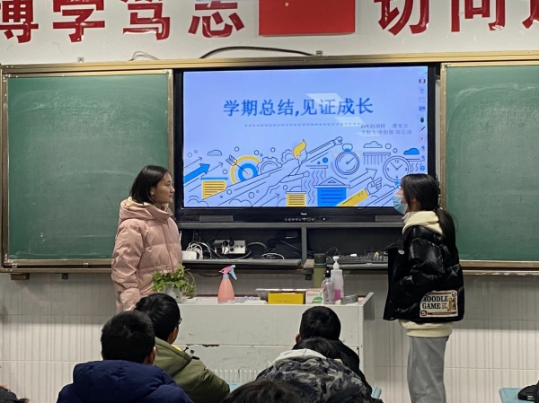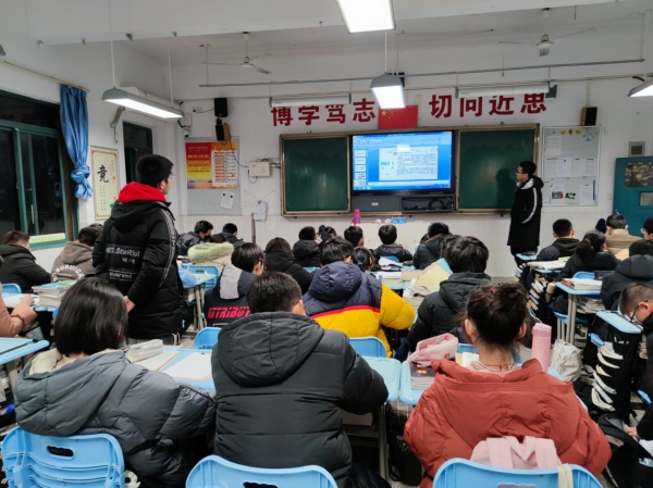 本次班会主要包括学期回顾、同赏照片、备战期末等方面,各班级不尽相同,各有特色。从刚入校时的新生入学教育到临近期末,从当初的互不相识到如今的知心好友,从最开始的一片陌生到当下的轻车熟路,时光如握不住的细沙,从指间滑落,于掌中流逝。流走的是时光,留下的是美好的回忆与成长。军训、劳动教育、运动会、拔河比赛、元旦晚会……同学们一起参加的活动不胜枚举,一幅幅照片唤起了整个班级的团结与凝聚。蓄力百天,今日一搏。期末考试在即,到了检验同学们一学期努力成果的时候,各班级纷纷交流经验,鼓舞士气,全力备战期末。