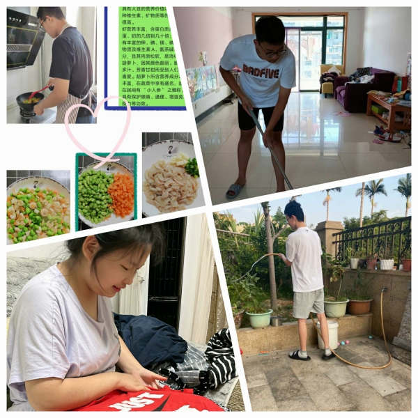 在2022年的暑假中,高二10班的同学就展现出积极品质,在家帮助家长做些家务,进行劳动实践,体会劳动的光荣。