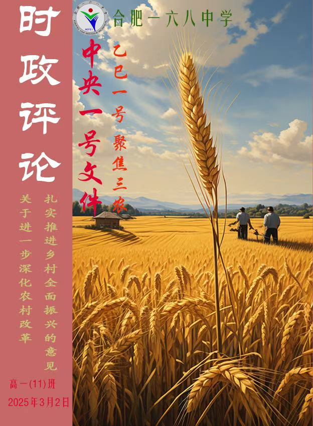 下一个环节是夏天悦同学准备的以“乙巳一号,聚焦三农”为主题的时政评论。三农问题是国家战略聚焦点,农业是国家发展繁荣的重要基础,粮食安全是关乎中国14亿人的根本问题。本次时政评论主要从“农业现代化推进”“农村经济结构调整”“生态环境保护与建设”三个方面进行介绍,让同学们感受到了农业科技水平的不断提升和粮食储备体制的完善,同学们认识到粮食安全的重要性,厚植了家国信仰,坚定了报国之志。