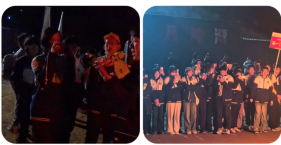 当暮色浸染大别山麓,梅山水库的粼粼波光隐入夜色时。我们在漫天璀璨星光下,营地中央的篝火腾空而起,跃动的火苗映照着青春的脸庞。这是人与自然的双向奔赴,是同学们积极昂扬、团结向上的班级风貌展现。当音乐响起时,同学们伴歌而欢、拍照记录,手机的灯光闪耀着同学们稚嫩陶醉的神情,与天上的星光、地上的火光一起奏出最美妙的合音,仿佛是青春朝气蓬勃,齐心协力的声音。