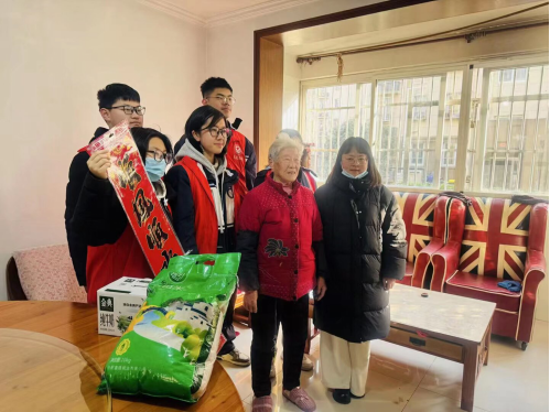 在“银龄陪伴”活动中,班委与暖心同学组成志愿小队,带着慰问品与喜庆春联在社区工作人员热心陪同下走进困难老人、独居老人家中。大家与老人促膝长谈、倾听心声,送上真挚的新春祝福,欢声笑语间,温暖直抵长者心田。陪伴与倾听中,同学们读懂了关爱与责任的意义。
