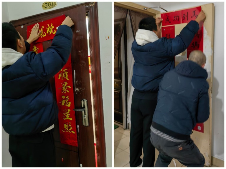除夕一早,同学们便忙碌起来。铺纸、研墨、挥毫,一副副寓意吉祥的春联跃然纸上;有的同学虽不擅书法,却也在家人指导下认真张贴,将红红火火的祝福挂上门楣。墨香与笑语交织,为节日增添了满满的仪式感。