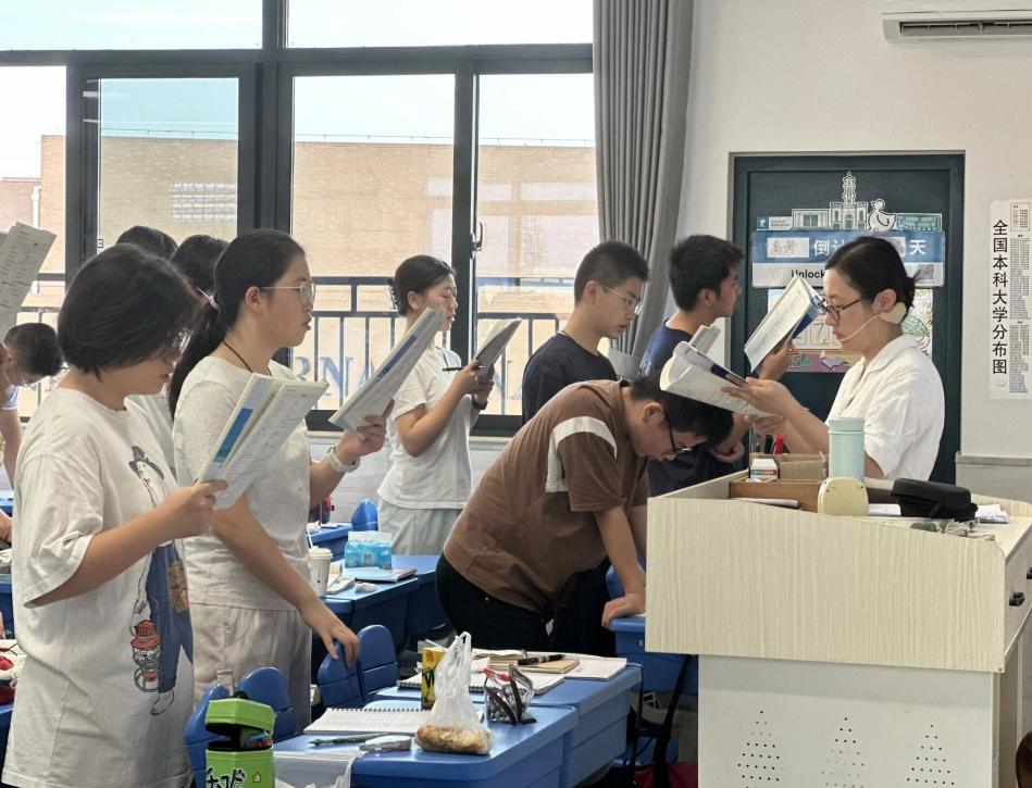 天刚蒙蒙亮,高三教学楼就飘出了朗朗书声。教室里,老师早已站在讲台旁,和同学们一起翻开课本,字音起落间,是文言的厚重、诗词的浪漫,是公式的严谨、时政的鲜活。有人挺直腰背大声诵读,让知识点随声音刻进脑海;有人轻声默念,指尖在书页上细细标注。阳光透过窗户,在书页上投下斑驳的光影,也把少年们专注的侧脸,勾勒得格外清晰。