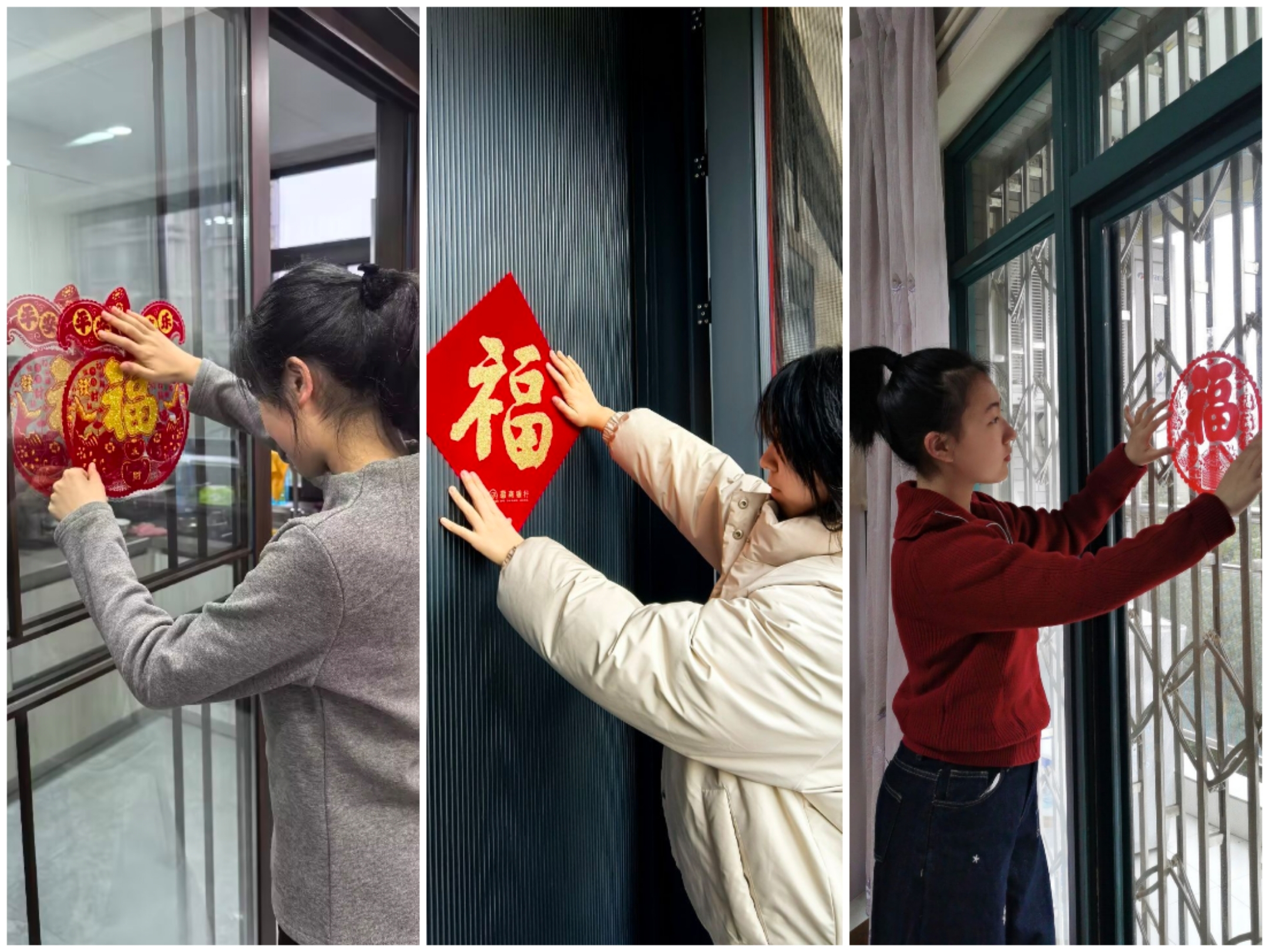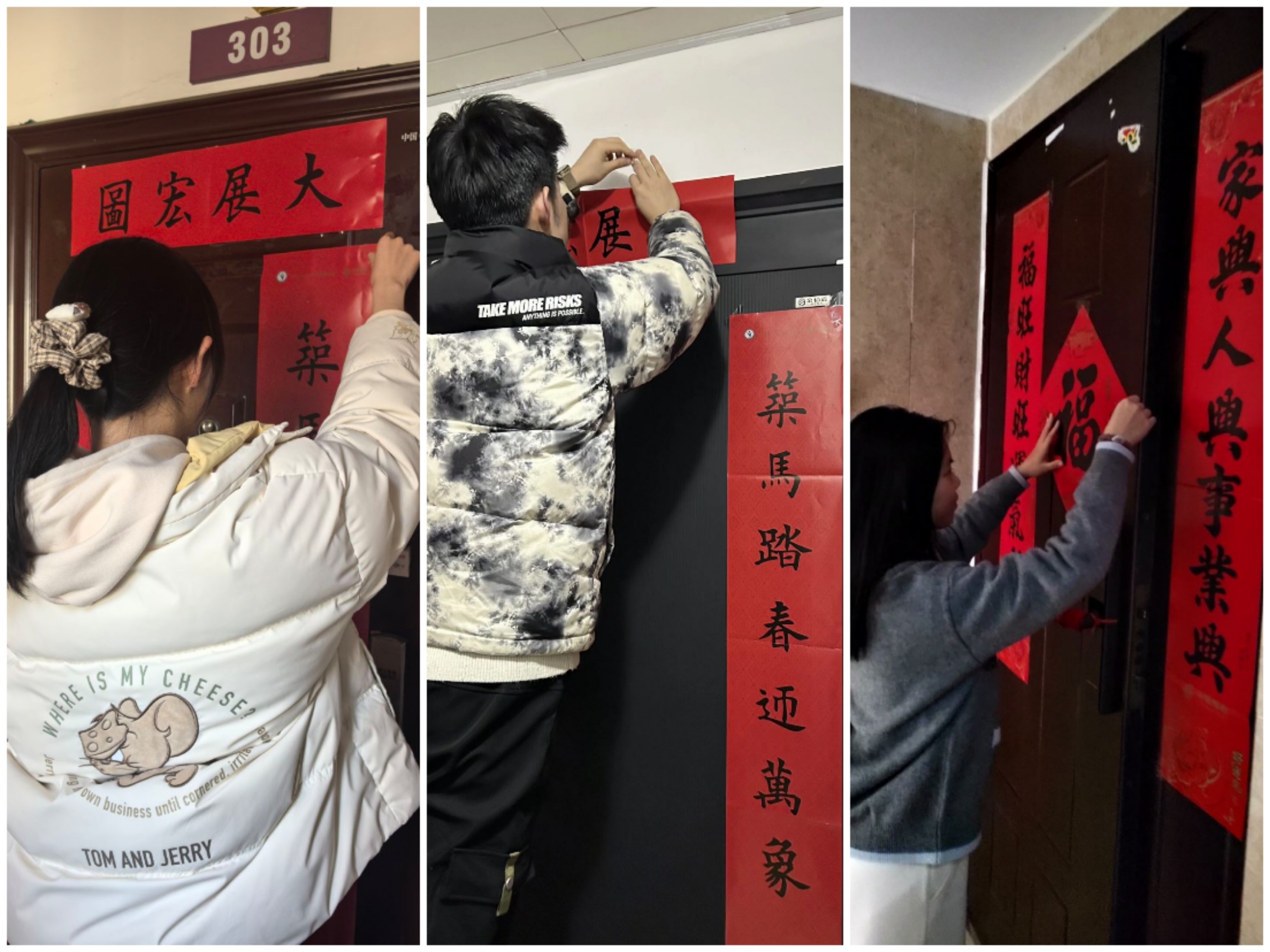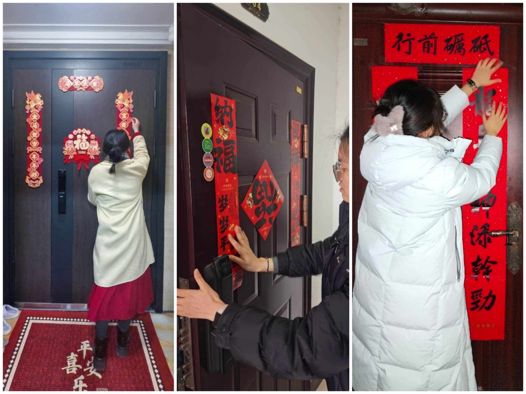 一模结束的铃声为紧张的备考按下暂停键,同学们卸下堆积的试卷,奔赴各自的家庭。大家团圆的同时也可以通过朋友圈、QQ群里看到周围同学团圆的模样:有的围坐圆桌,筷子起落间是满桌热气腾腾的菜肴;有人依偎在长辈身边,诉说着一学期的辛劳与收获。大家放下手中的笔,真正走进这份热闹与温暖里,和家人一起贴春联,贴福字,成为相册中分享最多的的年俗。母亲搬来板凳,稳稳的靠在门框边,父亲细心的抚平红纸,墨字在阳光下熠熠生辉。同学们踮起脚尖,认真的将春联对齐,贴正,再把“福”字轻轻的贴在门头,寓意“福到家门”。指尖触到红纸的温度,看见门前一片喜庆红火,忽然懂得这一笔一划,一纸一帖,藏的是家人对新年的期盼,也是岁月最安稳的祝福。街巷里的年味越来越浓,红灯笼摇曳着吉祥,欢声笑语漫过屋檐,原来每一个匆匆归家的人,都在奔赴同一场名为团圆的盛宴。万家灯火,每一盏都为亲人而亮,每一缕炊烟,都裹着家的温柔。