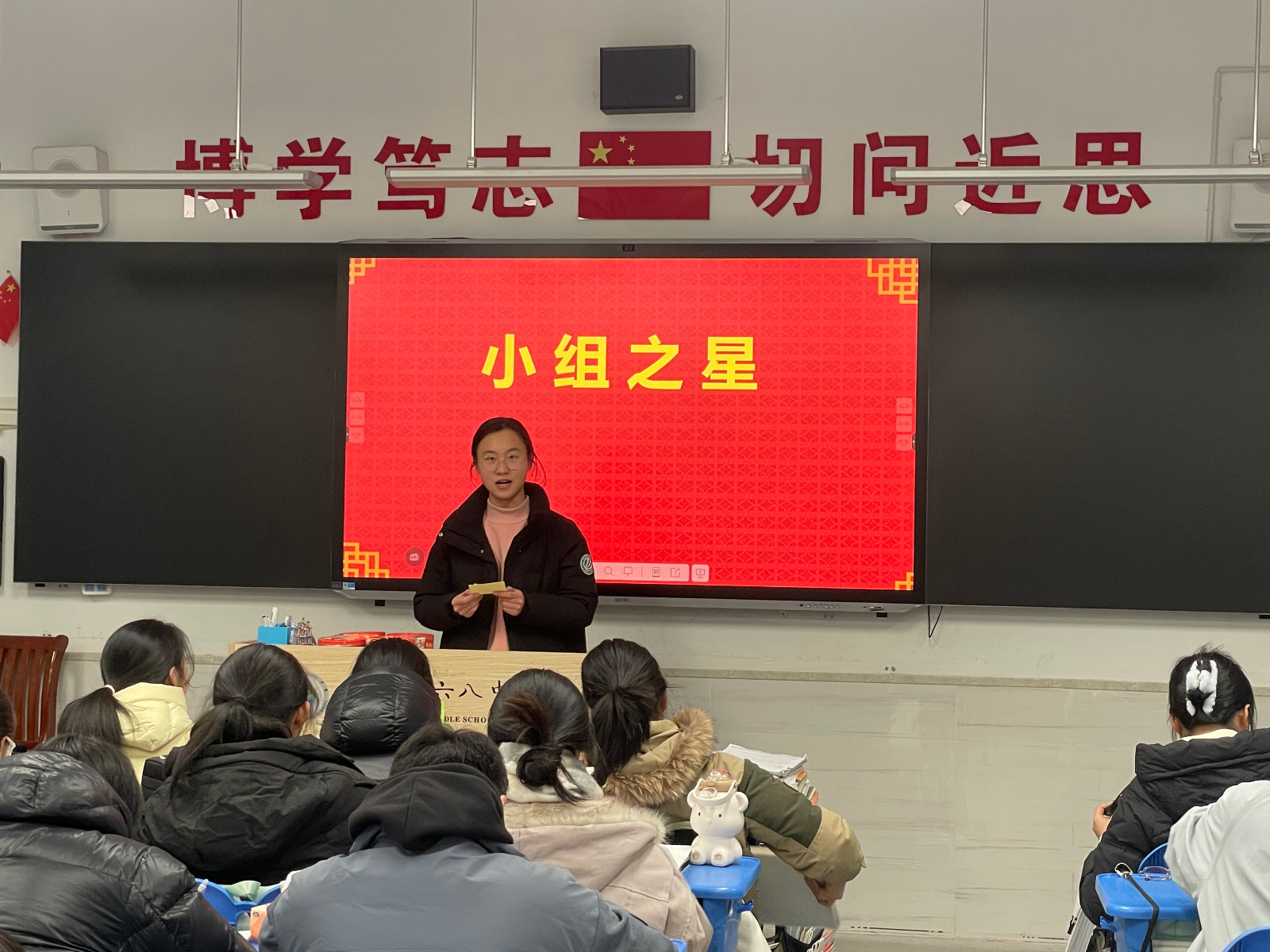 1月12日晚自习班会时间,29班在孙蕾蕾老师的组织下,本月“小组之星”的颁奖仪式在值周班干激情澎湃的开场词中拉开序幕,组长们热情洋溢地为本组“小组之星”致颁奖词,各“小组之星”闪耀登场,他们是小组成长共同体中当之无愧的榜样,在学习和生活上努力做好自己的同时也积极帮助其他同学,他们就是学习战场上的英勇先锋,是梦想征程上的坚定行者,更是同学心目中名副其实的闪亮之星。