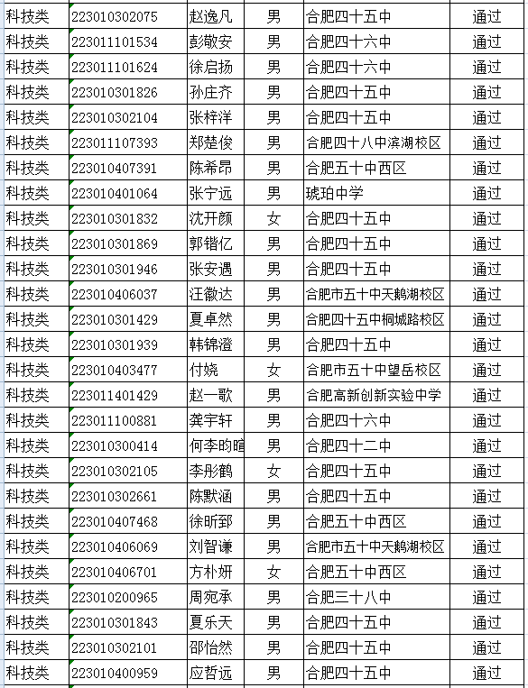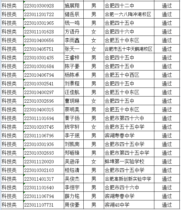 根据《合肥一六八中学2022年自主招生(科技、体育类)实施方案》,现将资格审核通过名单公示如下。科技类不再组织专业考核,审核通过即为合格。体育类考核工作按照以下方案进行。