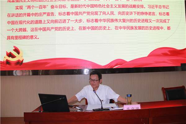 接着范守国重点解读了习近平总书记重要讲话提出的一系列新思想新论断,范书记要求全体党员要熟知中国共产党百年奋斗历程,响应党的号召,坚守理想,英勇斗争,为实现中华民族伟大复兴而努力。