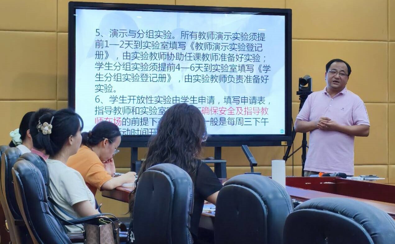 周健结合学科特点及当下政策对理化生老师和实验员提出了具体要求,最后由实验室刘五七老师对全员进行培训。