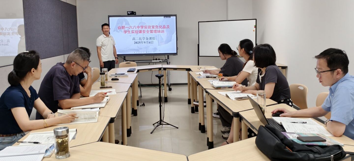 为进一步强化我校实验室危险化学品及学生实验课安全管理工作,提高理化生老师的专业素质,确保安全,学校于9月3日下午在行政楼四楼第一会议室召开专题培训会,高一、高二理化生老师和实验教师参会,各备课组后续召开会议传达学习。