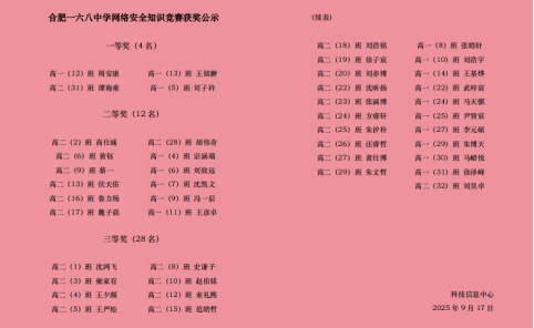 为进一步加强校园网络安全教育,提升学生网络安全意识和防护能力,积极响应2025年国家网络安全宣传周,合肥一六八中学科技信息中心于近日成功开展了网络安全周系列活动。本次活动包括网络安全知识竞赛和网络安全主题黑板报征集两项内容,得到学生的广泛关注和积极响应。