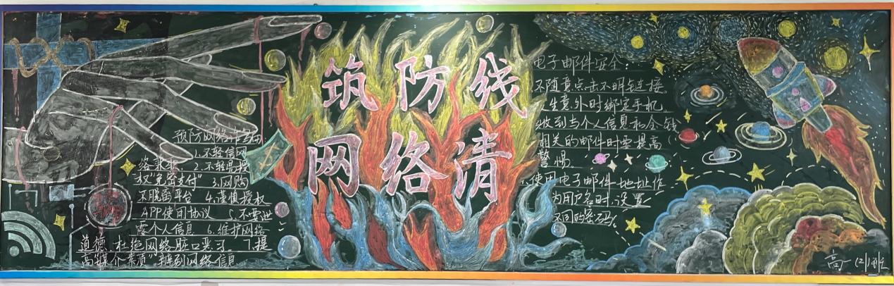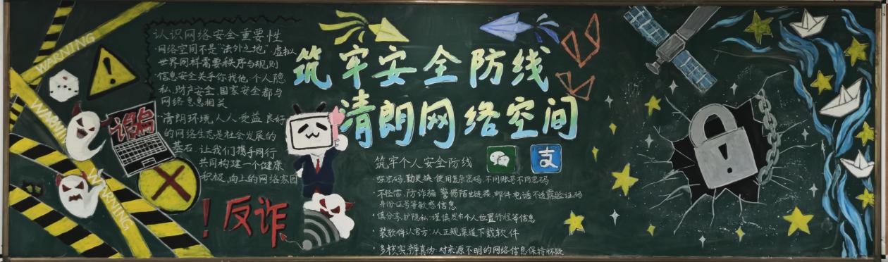 此外,本次活动还组织了网络安全主题黑板报征集,高一、高二年级积极参与,报送作品内容充实、设计新颖,充分展现了同学们对网络安全知识的深入理解和创意表达,进一步营造了校园网络安全教育的良好氛围。