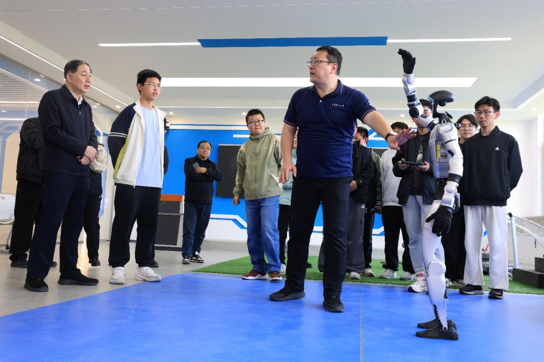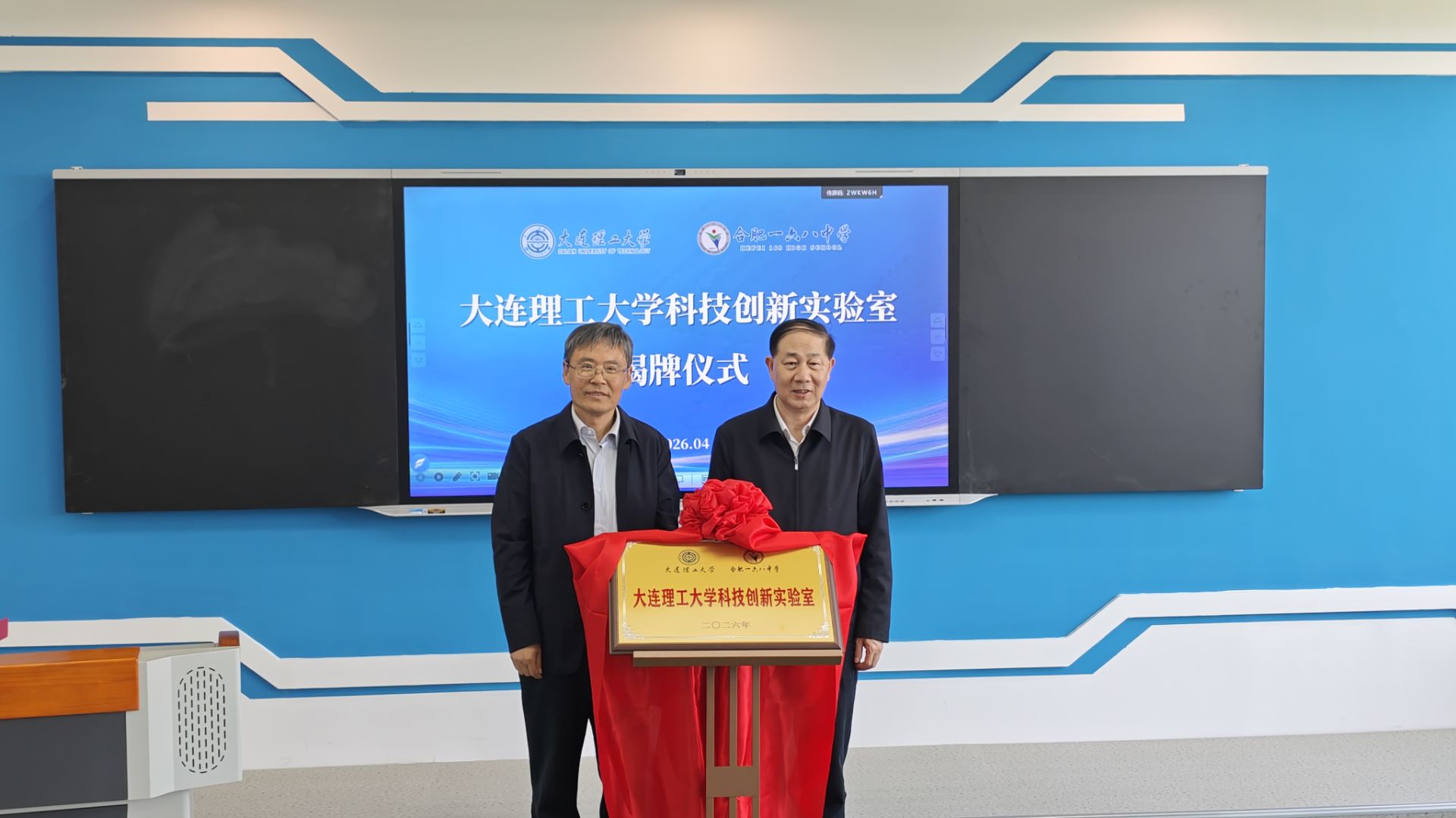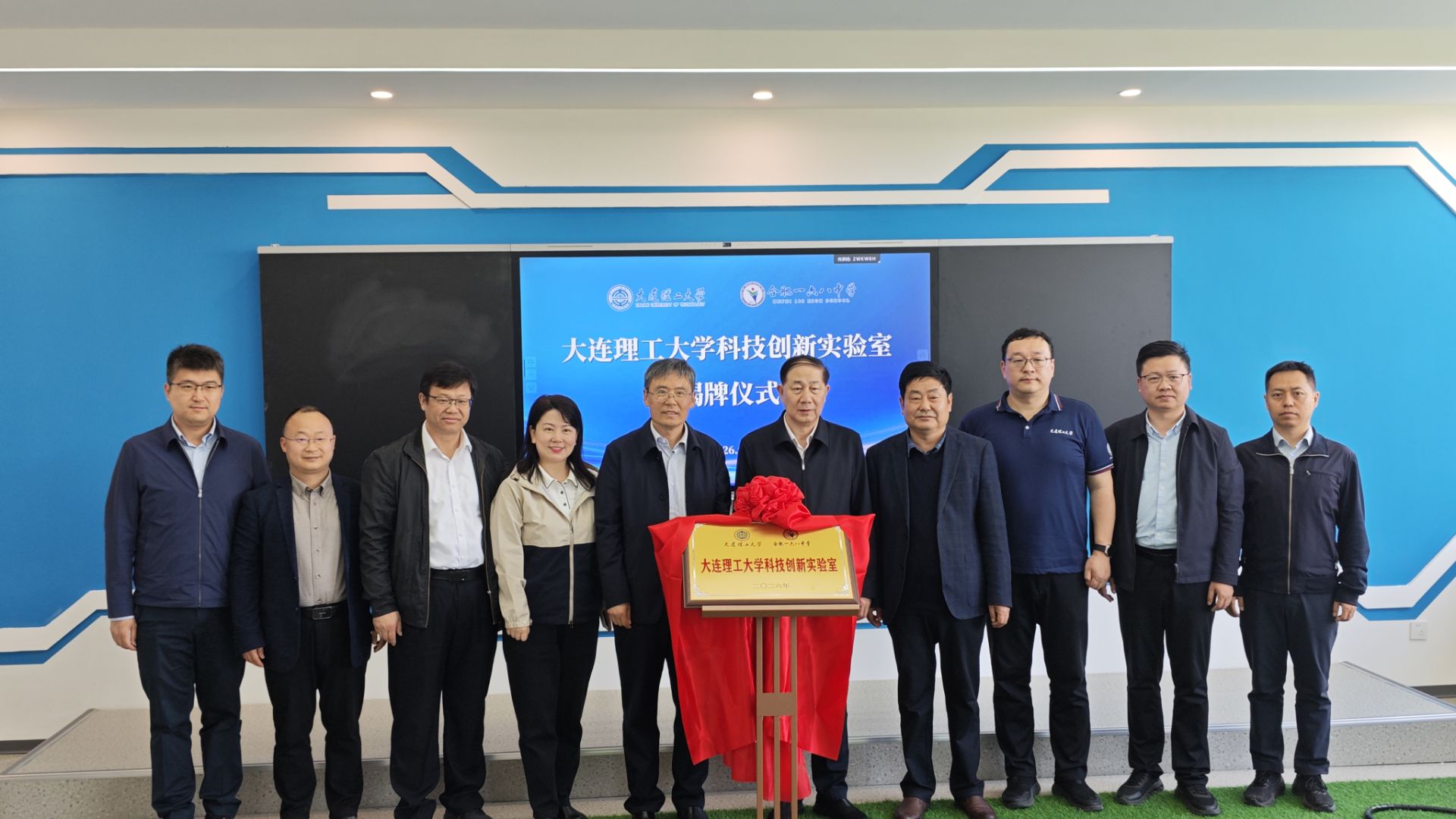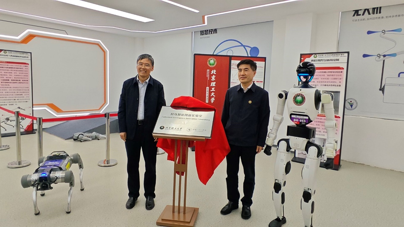 随后,揭牌仪式进入核心环节。24日上午,李振键与吴菊文为北京理工大学和合肥一六八中学大中共建“具身智能创新实验室”揭牌;24日下午,项昌乐和吴菊文为大连理工大学和合肥一六八中学大中共建“科技创新实验室”揭牌。红绸缓缓落下,金色的牌匾熠熠生辉,标志着该实验室正式投入使用,也开启了双方协同育人、共促科创发展的全新征程。现场师生共同欢呼,定格下这一意义非凡的瞬间。