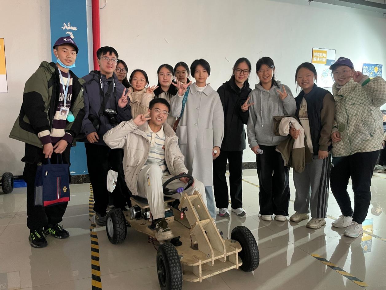 这场从教室到车间的移动课堂,让同学们亲眼见证了产品从概念到成型的完整过程。在蔚来汽车生产基地,现代化生产线上机器人的精准操作与高效协同,展现了智能制造的真实图景。近距离观察汽车制造的各个环节,让同学们直观感受到新能源汽车在材料、设计与动力系统上的创新突破。亲手参与木质小车组装流程。从轮胎的组装到小车的驾驶,同学们深度参与其中,欢声笑语中体会到“工匠精神”是如何在每一个细节中落地的。许多同学表示,自动化生产线不仅令人惊叹,更让他们深刻认识到科技正如何重塑传统制造业的形态。后续的讲座中,我们也感受到了国产新能源汽车发展的迅速以及技术的先进,感受到了新时代在党的领导下,国家科技的快速发展,技术的快速进步。