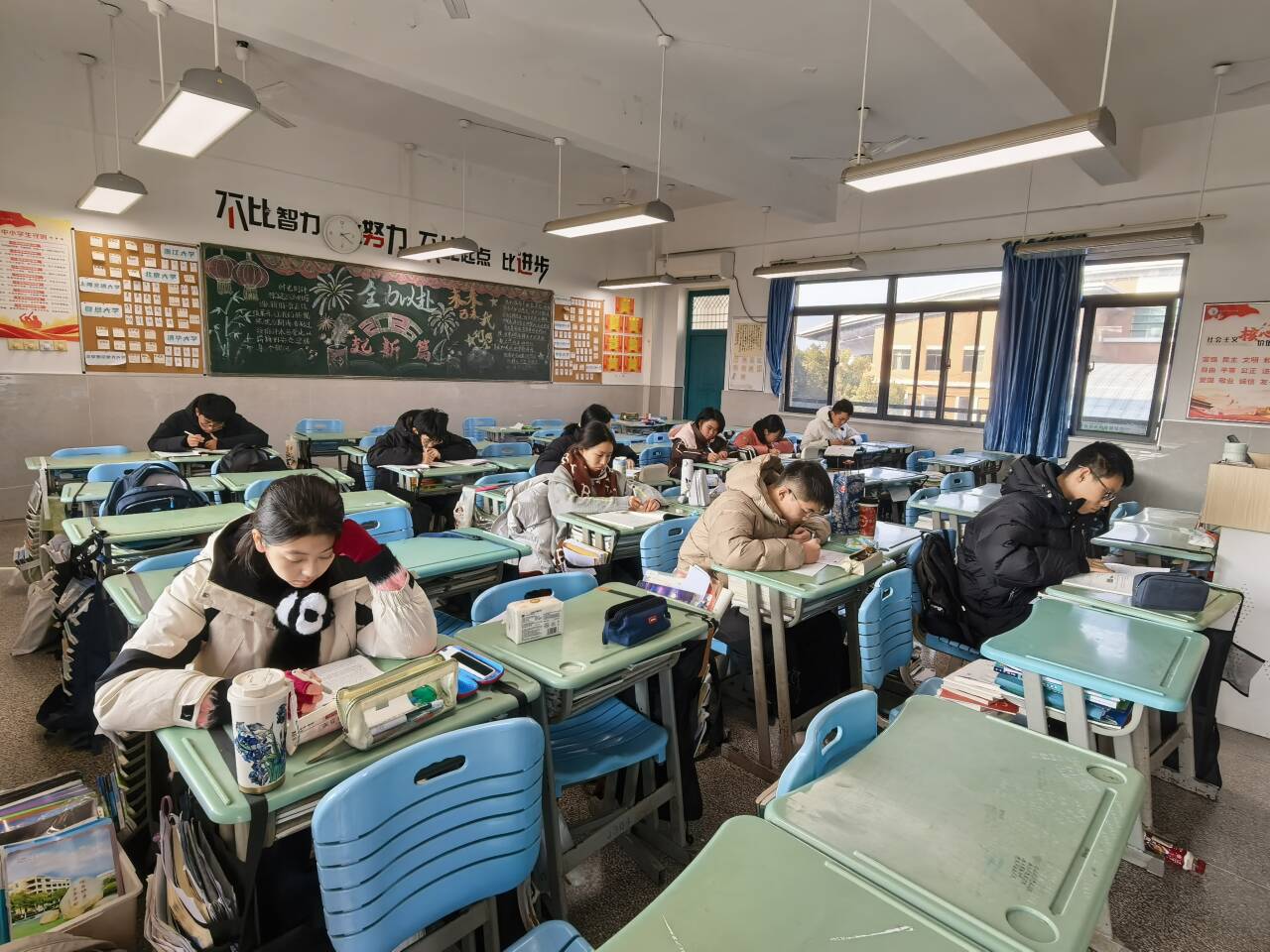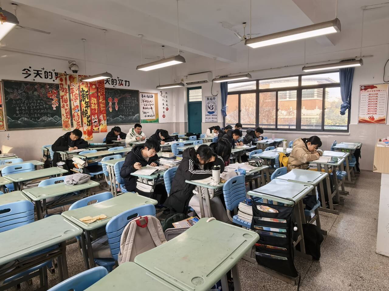 冬日的晨光透过教室的窗棂,合肥一六八中学高一年级的教室里,是一片专注宁静的景象:周末,留校学生按照高一年级的管理要求,留在教室自习为即将到来的期末考试做最后的冲刺。
