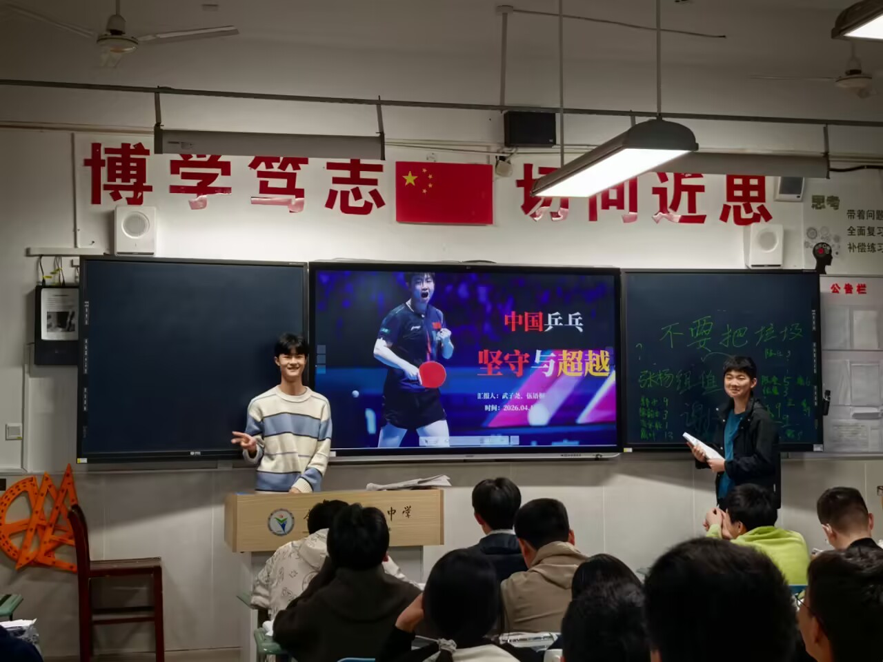 少年有志,当承精神;执梦前行,方显担当。活动的最后,同学们纷纷表示愿意从国乒精神中汲取力量,将坚守融入日常学习,以坚韧攻克学业难关;将超越刻进青春底色,以进取突破自我局限,脚踏实地、奋勇争先,用青春力量书写属于自己的青春华章。