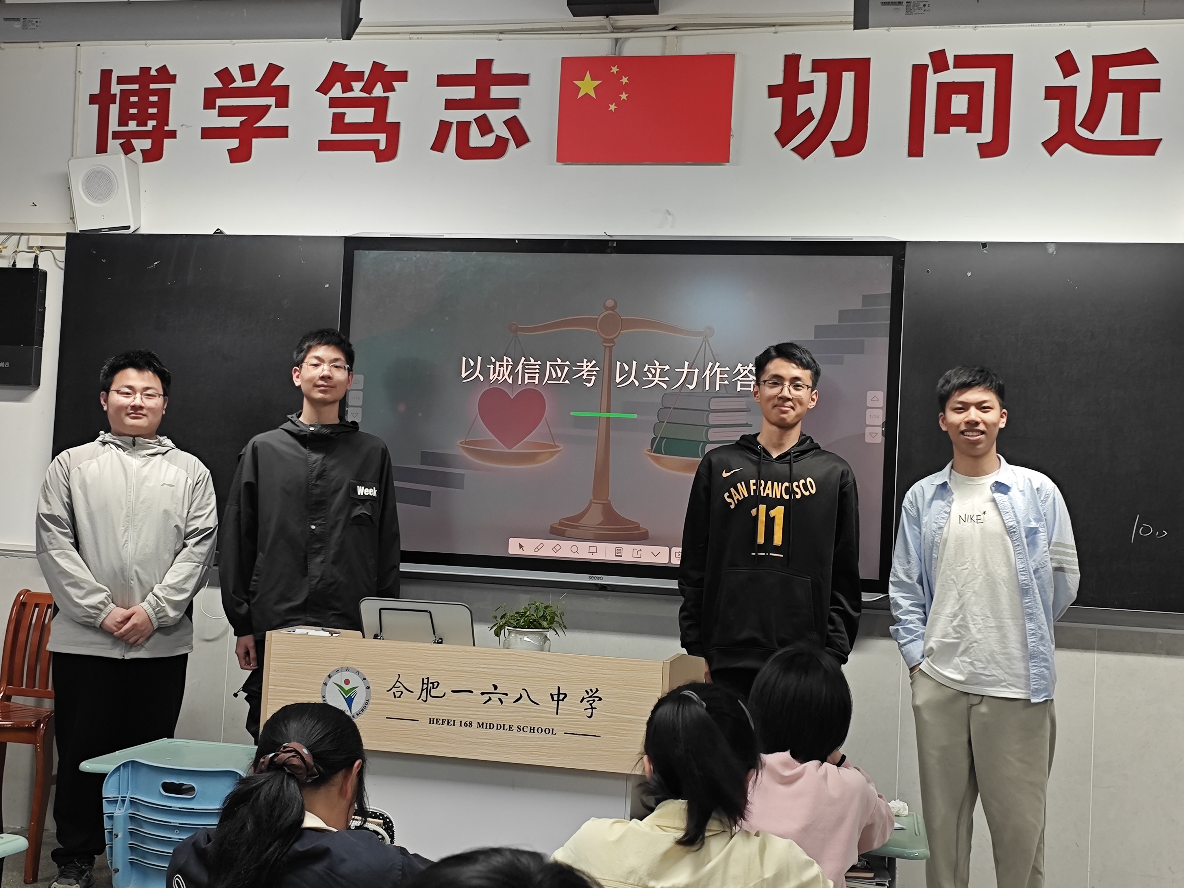4月26日,合肥一六八中学高一年级各班召开了以“以诚立身,以信应考”为主题的班会课,以即将到来的期中考试为契机增强同学们的诚信意识,引导同学们遵守规则。